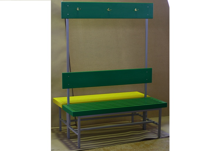 Материла каркаса: труба профильная 25 * 25 мм, порошковая покраска, цвет серый. Каркас цельносварной. Сиденье: ЛДСП 16 мм, поролон 20 мм, искусственная кожа.